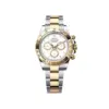 The Rolex Cosmograph Daytona 40 mm Ref. 116503‑0001 presents a striking and balanced fusion of durability and luxury in its Yellow Rolesor construction—Oystersteel paired with 18 ct yellow gold. The crisp white dial with gold subdials creates a refined visual identity that encapsulates both the Daytona’s racing heritage and Rolex’s mastery in combining form and function. A fitting companion both on the racetrack and at elegant events.