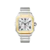 The Santos de Cartier XL Chronograph Steel & 18ct Yellow Gold Watch is a bold reimagining of Cartier’s iconic aviation timepiece, now fused with chronograph functionality for the modern gentleman. With its luxurious combination of stainless steel and 18ct yellow gold, this XL model commands attention, blending sporty precision with refined elegance.